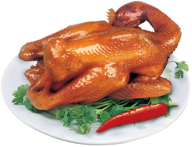 安阳市滑县的道口镇是全国闻名的"烧鸡之乡"。道口烧鸡由道口镇"义兴张"烧鸡店所产,是河南名特产食品之一。其造型、色泽、味道、软烂被誉为"四绝",冷食或热食均回味无穷。道口烧鸡创始于清顺治十八年(1661),距今已有300余年历史。清乾隆五十二年(1787),现在的烧鸡大师张存友的先祖张炳,偶遇曾在清宫御膳房作过厨师的老友,从他那里获得"八料加老汤"烹制烧鸡秘诀,于是名声大振。他把店铺改名为"义兴张",意在缅怀"义友济兴"之情。清乾隆皇帝南巡,途经道口,食"义兴张"烧鸡,异香而醒神,赞之为天下佳馔。从此,"义兴张"烧鸡成为贡品。1955年,"义兴张"六代嫡孙张和礼在河南省政协会议上公开了祖传300余年的烧鸡绝技秘方。1956年国庆节,道口烧鸡进入国宴。自此,全国各省、市、自治区慕名来滑县学艺者络绎不绝。1981~1987年,在历次国家和省级食品评比会上,均获国家商业部和省政府颁发的优质产品证书。1978年以来,滑县人民政府积极扩大道口烧鸡生产规模,兴建了国营道口"义兴张"烧鸡大楼,建成了一条科学的流水作业线。1984年成立了中国滑县道口烧鸡总公司,对烧鸡业统一管理、科学研究与开发,筹建了规模较大的滑县烧鸡罐头食品厂,建立了烧鸡技术学校,编印了技术培训教材;与此同时,研究成功了复合铝箔袋软包装,为烧鸡的久储远运开辟了新途径。1985年全县有加工道口烧鸡的厂、铺430多家,年产量可达3500吨。
