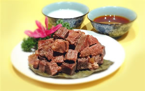 | [导读]到焦作找当地特产,闹汤驴肉不容错过。如今焦作乃至郑州、洛阳等的大商场小超市货架上,摆满了各个牌子各种风味的闹汤驴肉,还有整大块包装和小块散装两大类。闹汤驴肉号称中原一绝,有“天上龙肉,地上驴肉”的说法啊,可见其味美堪与天上八珍玉食相媲美。 |