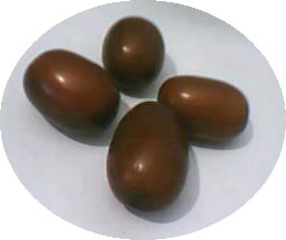 灰枣 灰枣又名新郑大枣.主产于河南新郑、中牟,是新郑枣区的主栽品种, 约占枣区总产量的60%。现已在全国很多地区推广,特别是新疆阿克苏大面积引种成功,取得了极好的经济效益和社会效益。 灰枣果实长椭圆形,一头大一头小,一般纵径3.8cm,横径2.6cm,果实中等大小,平均单果重9.7g,最大13.3g。果皮中厚,棕红色。果肉厚、绿白色,质地致密、细脆,汁液中多,味甜,品质上等。鲜枣含糖量30%左右,可溶性固形物含量32%以上。核较小,长纺锤形,核与肉易分离,可食率97.3%,制干率为45%。干枣颜色深红,果肉致密、离核,富有弹性,含糖量65.1%,入口绵香蜜甜。灰枣既可鲜食,又可制干、加工,为中果型最佳良种。 果实于9月上旬成熟,树势健壮,枝灰色,粗壮稀疏,树资开张,抗旱、耐瘠薄,抗病虫,也较抗风和抗盐酸。很丰产、稳产,适宜沙地大面积发展。